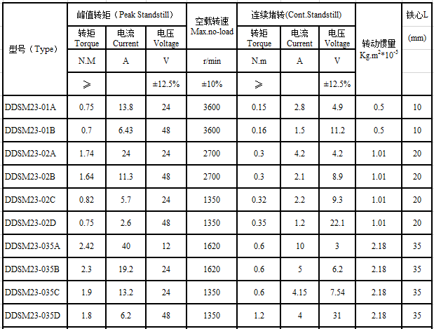 DDSM23 series brushless direct drive motor performance indicators