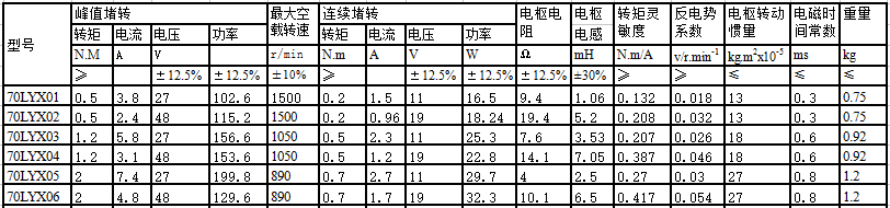 70LYX series dc torque motor performance parameters