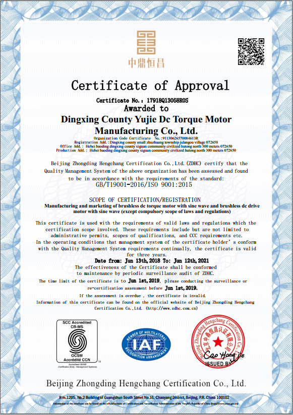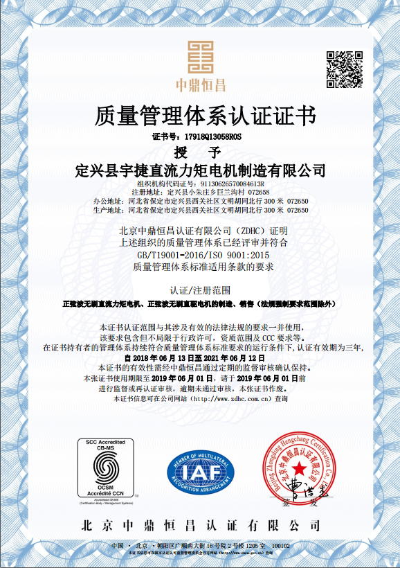 河北宇捷電機(jī)科技有限公司通過質(zhì)量管理體系認(rèn)證