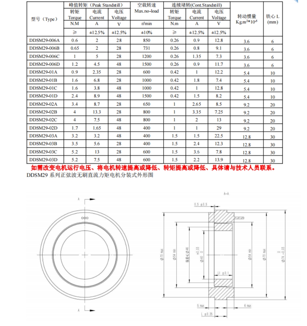 DDSM29系列無(wú)刷直流力矩電機(jī)